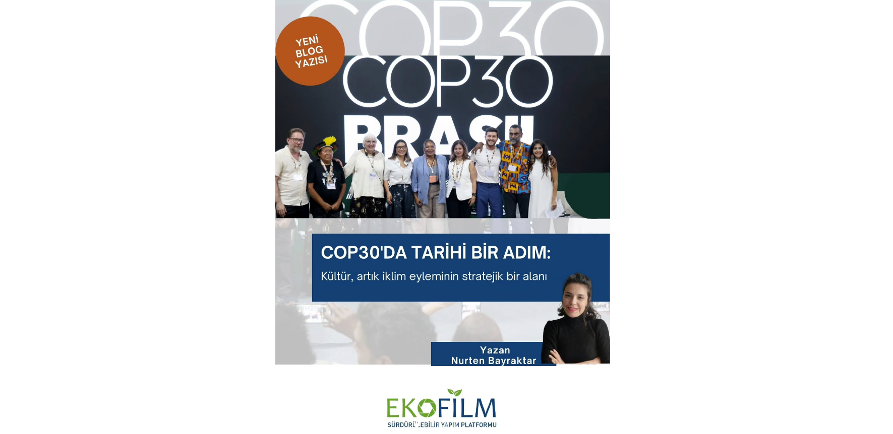 16. Sezon Fark Yaratanlarımızdan EkoFilm Platformu’nun kurucularından Nurten Bayraktar, “COP30’da Kültür ve Sanat” başlıklı yazısını yayınladı. Nurten Bayraktar’ın kültür, sanat, film ve televizyon endüstrilerinin COP gündemlerindeki yerini ve bu sürecin tarihsel gelişimini kaleme aldığı yazısını okumak için bağlantıyı ziyaret edebilirsiniz. Okumak için tıklayınız.
